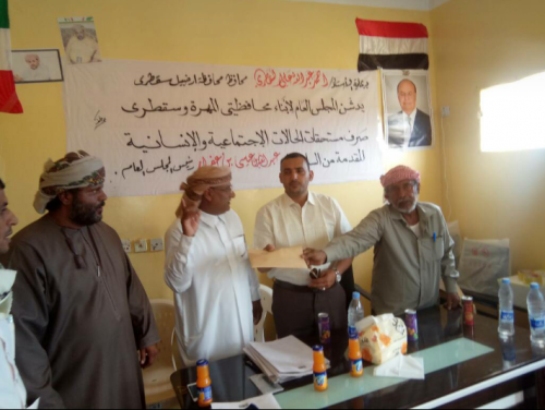 تم تدشين مستحقات الحالات الإجتماعية والإنسانية المقدمة من صاحب المقام السلطــان عبــداللــه بـن عيســى بن عفرار رئيس المجلس العام لأبناء محافظتي المهرة وسقطرى عضو هيئة المجلس الانتقالي الجنوبي.
