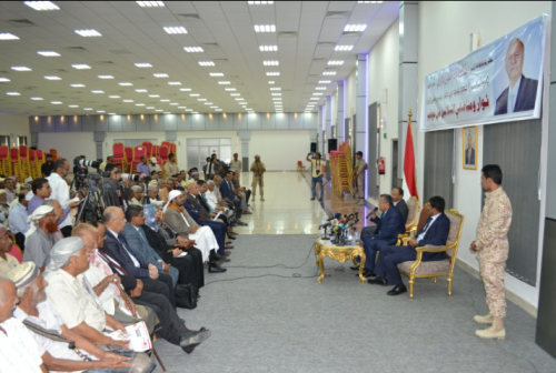 وحث الجميع على رصف الصفوف وتوحيد الكلمة والارادة الصادقة لمواجهة العدو المشترك المتمثل بالانقلابين عملاء ايران وفي بناء وتوفير خدمات البنية التحتية وتحقيق الامن والاستقرار في المحافظات المحررة .