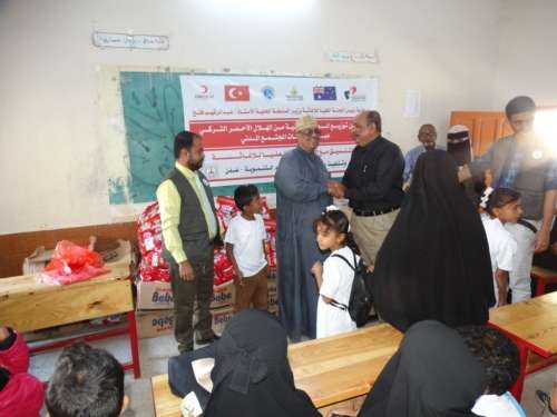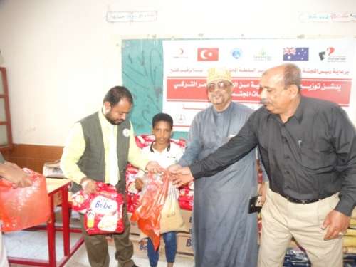 دشن مستشار وزارة الإدارة المحلية المنسق العام للجنة العليا للإغاثة باليمن جمال بلفقيه اليوم بعدن توزيع ٥٠٠ سلة غذائية والمقدمة من الهلال الأحمر التركي للأيتام بعدن ٠