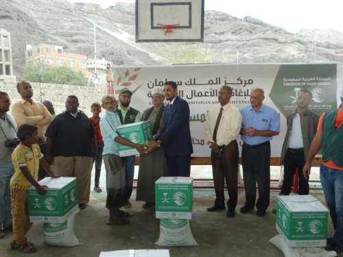 و اوضح الشيخ صالح الذيباني مدير مركز الملك سلمان للاغاتة و الاعمال الانسانية ان المركز يدشن اليوم مشروع توزيع السلة الغذائية للنازحين من تهامة بمحافظتي عدن و ابين و التي تزيد عن ( ١٢٥٠) سلة غذائية منها ٢٠٠ سلة للنازحين في مدينة جعار بابين .