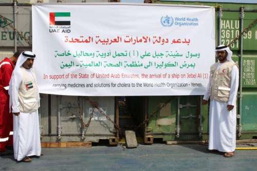 وفي سياق متصل وصلت صباح أمس إلى ميناء عدن سفينة إماراتية تحمل على متنها ٩ حاويات أدوية مقدمة من الهلال الأحمر الإماراتي وسلمت لمنظمة الصحة العالمية وسيتم توزيعها على المحافظات.