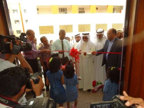 كما قام رئيس الوفد بقص الشريط ايذانا بافتتاح مبنى المركز الكويتي للتدريب والبالغ تكلفته ٤٨ مليون ريال بتمويل كويتي .