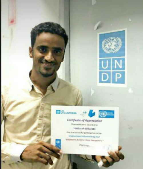 كرم مكتب برنامج الامم المتحدة للمتطوعين ( UN Volunteers) الشاب حيدرة الكازمي كأبرز الشباب المتطوعين في عام 2017.