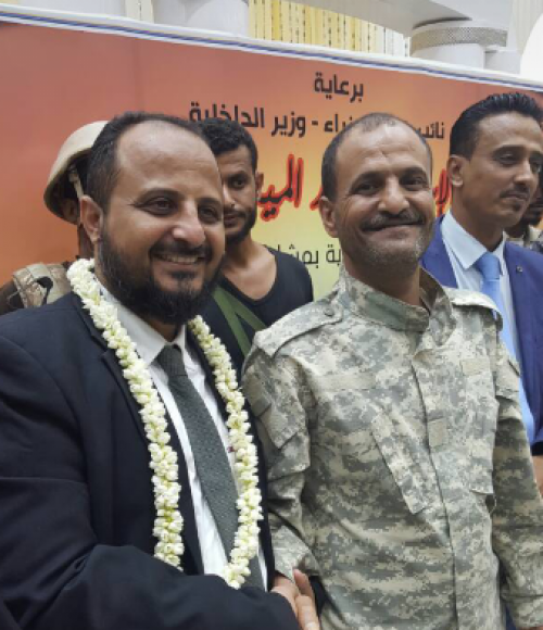 أهدى اللواء الركن شلال علي شائع هادي مدير أمن العاصمة عدن عُقداً من (الفل) لأخيه الأستاذ هاني اليزيدي مدير عام مديرية البريقة.