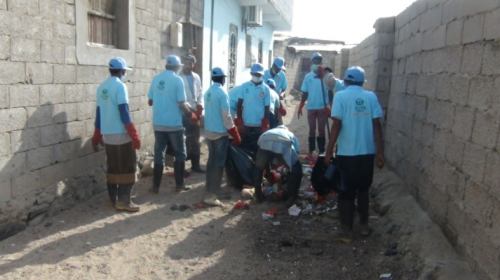 دشن صباح اليوم محمد نصر شاذلي وكيل محافظة عدن في مدرسة الغافقي بمنطقة البساتين مديرية دار سعد حملة نظافة لرفع المخلفات ضمن برنامج النقد مقابل العمل - رفع المخلفات في منطقة البساتين والذي تنفذه منظمة أدرا بالتنسيق مع صندوق النظافة والتحسين بعدن .