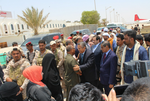 وصل الى المكلا صباح اليوم رئيس الوزراء الدكتور أحمد عبيد بن دغر ومعه عدد من الوزراء في زيارة لمحافظة حضرموت يشارك خلالها ابناء حضرموت افراحهم بالذكرى الثانية لتحرير ساحل حضرموت من العناصر الارهابية ويفتتح ويضع حجر الاساس خلالها لعدد من المشاريع التنموية احتفاءً بهذه المناسبة .