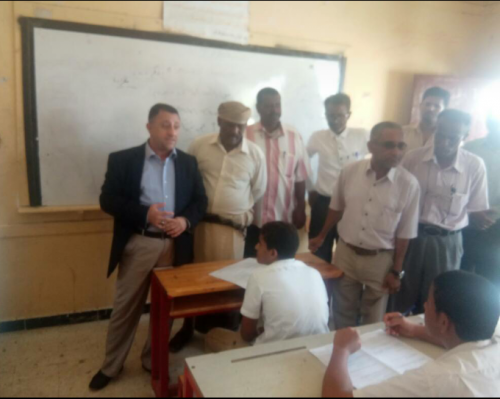 دشن الاستاذ مهدي الحامد الأمين العام للمجلس المحلي يرافقه الاستاذ يحي اليزيدي مدير عام التربية والتعليم في المحافظة وعدد من مدراء العموم صباح اليوم الأحد 29 أبريل 2018 الامتحانات النهائية للمرحلة الأساسية الصف التاسع في مديريات محافظة أبين.