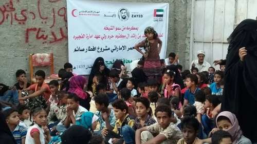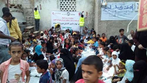 نظم فريق هيئة الهلال الأحمر الإماراتي في لحج اليوم إفطارا جماعيا للأيتام بساحة جمعية أيادي الخير التنموية بمدينة الحوطة المحروسة التابعة لمحافظة لحج وذلك في إطار مشروع إفطار الصائم الذي تنفذه " الهيئة " خلال شهر رمضان المبارك بمكرمة من قرينة سمو الشيخ محمد بن حمد بن محمد الشرقي ولي عهد الفجيرة سمو الشيخة لطيفة بنت محمد بن راشد آل مكتوم وحضر الإفطار 440 من الأمهات والأيتام من مختلف مناطق المديرية.