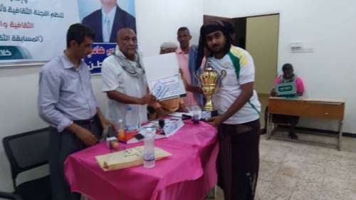 برعاية ودعم وزير الشباب والرياضة الاستاذ نايف البكري ومحافظ أبين اللواء الركن أبوبكر حسين وإشراف مكتب الشباب والرياضة بقيادة راعي رياضة أبين الكابتن أحمد صالح الراعي اختتمت مساء السبت المسابقة الثقافية التمهيدية لأندية محافظة أبين والتي نظمتها اللجنة الثقافية بالمحافظة بالتنسيق مع الإدارة العامة للأنشطة الثقافية والاجتماعية بوزارة الشباب والرياضة.