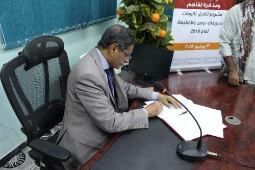 رعى محافظ حضرموت قائد المنطقة العسكرية الثانوية اللواء الركن فرج سالمين البحسني التوقيع على مذكرة تفاهم لمشروع تأهيل ثانويات مديريتي دوعن والضليعة بين مكتب وزارة التربية والتعليم بساحل حضرموت ومؤسسات صلة للتنمية والعون للتنمية وبازرعة التنموية الخيرية .