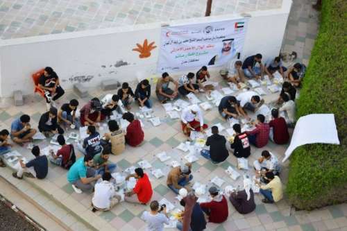 نظم فريق الهلال الأحمر الإماراتي أمس افطارا جماعيا بحديقة فندق اللوتس بخورمكسر عدن جمع العديد من أبناء عدن على مائدة وآحدة في إطار جهوده لتقوية الروابط الاجتماعية والإنسانية خلال شهر رمضان المبارك.