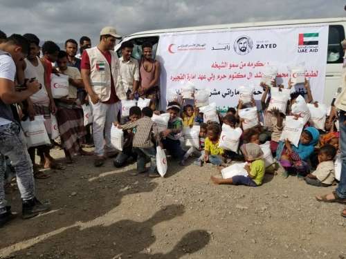 ووقف عشرات الأطفال والنساء والرجال يتلقون مساعدات الهلال التي جاءت ضمن برنامج مساعدات سمو الشيخة لطيفة بنت محمد بن راشد آل مكتوم حرم سمو ولي عهد إمارة الفجيرة في اطار مشروع "إفطار صائم" الذين ينفذه الهلال الأحمر الإماراتي في المحافظات اليمنية المحررة طيلة أيام شهر رمضان المبارك .