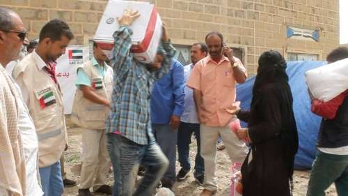 وزعت هيئة الهلال الأحمر الإماراتي 300 سلة غذائية على الأسر الفقيرة بمديرية الشعيب اليمنية في اطار الجهود التي تبذلها دولة الامارات لإيصال المساعدات الإنسانية الى مستحقيها من المواطنين اليمنيين ومقدمتهم الأسر الفقيرة والأشد فقرا الذين يعانون ظروفا صعبة نتيجة الحرب التي تشنها مليشيا الحوثي ضدهم .