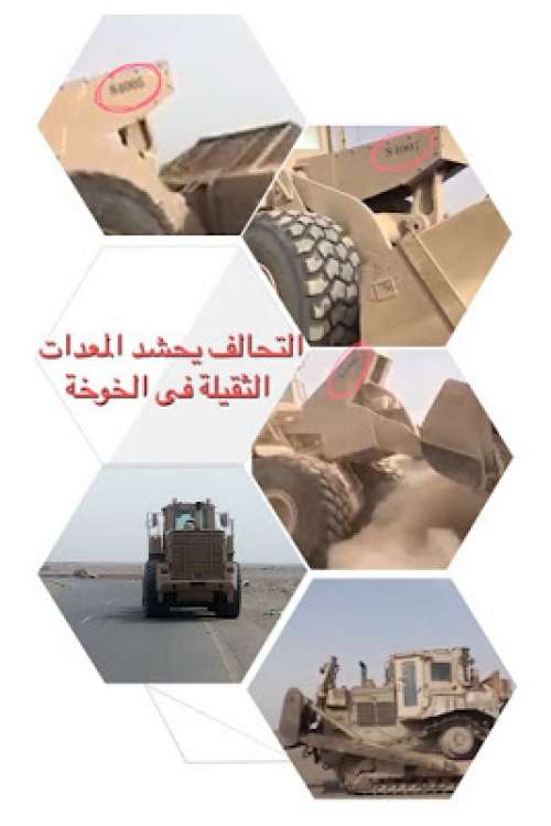 كشفت مصادر خاصه عن وصول معدات وآليات ثقيلة الى مدينة الخوخة مقدمة من القوات الاماراتية المسلحة المشاركة ضمن التحالف العربي لتعزيز قوات المقاومة اليمنية المشتركة التي تخوض قتالاً لتحرير محافظة الحديدة ومينائها .