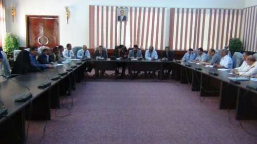 عقد لقاء موسع صباح اليوم بقاعة المستثمربرئاسة القائم باعمال محافظ عدن احمدسالم ربيع علي وبحضوراعضاء اللجنة المكلفة من وزارة الادارة المحلية والامانة العامة لدائرة السلطة المحلية برئاسة الوزراء برئاسة وكيل وزارة الادارة المحلية /عوض مشبح وبحضوعدد من وكلاء وزارة الادارة المحلية ووكلاء محافظة عدن ومدراء العموم لعدد من المرافق الخدمية والايرادية .