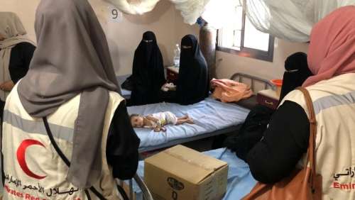 وتضمنت قافلة المساعدات الطارئة في مرحلتها الأولى 1500 سلة غذائية إضافة إلى 1500 مكملات غذائية للأطفال ، إضافة إلى زيارة ميدانية لفريق طبي ، وكان ذراع الإمارات للإعمال الإنسانية -الهلال الأحمر الإماراتي -الأسرع استجابة ووصولا لمناشدات اجتاحت شبكات التواصل الإجتماعي طالبت المنظمات الإنسانية بإنقاذ الالاف من مواطني وأطفال الأزارق الذين يعانون من سوء التغذية وغياب لخدمات الرعاية الصحية والطبية والأمن الغذائي وباتت المجاعة خطر يهدد حياتهم ، وتستدعي الأوضاع المعيشية الصعبة التدخل العاجل والسريع لتقديم المساعدات الغذائية والدوائية .