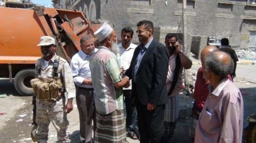 اطلع القائم بأعمال محافظ عدن احمد سالمين ومعه مدير عام صندوق النظافة المهندس قائد راشد اليوم على سير النظافة والتحسين بمديرية صيرة .