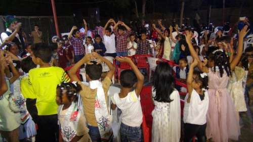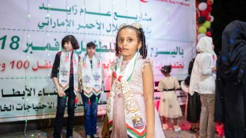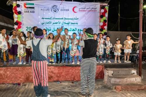 أقام الهلال الأحمر الإماراتي فعالية احتفالية بعنوان "بسمة اطفال الابطال تهمنا" بمسرح الحمراء كمرحلة أولى ل 100 من الأطفال الأيتام وبعض أبناء الشهداء بالتنسيق مع جمعية الحياة للتدخل المبكر لذوي الاحتياجات الخاصة بعدن .