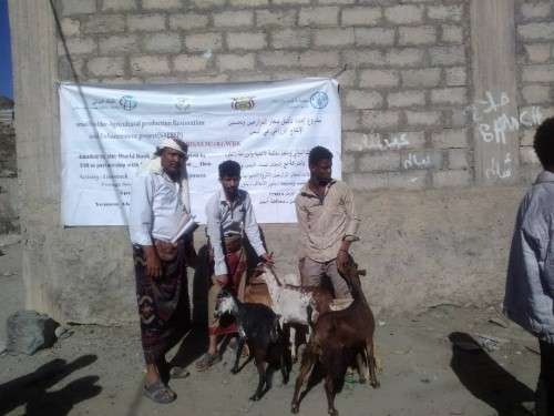 الجدير بالذكر ان مشروع دعم وإعادة تأهيل صغار المزارعين في محافطات " أبين - تعز - الحديدة " يهدف إلى توفير الاستقرار النسبي للأسر النازحة والمضيفة وكذا توفير الأمن الغدائي والاستقرار للأسر التي ترعى الماشية والدجاج من خلال توزيع والماشية والدجاج لهم.