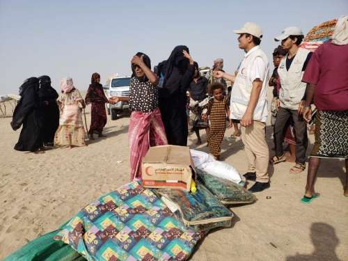 وزعت هيئة الهلال الأحمر الإماراتي صباح اليوم مساعدات غذائية وإيوائية لسكان مناطق "قعوة و البرقاء" بمديرية رأس العارة الواقعة على الشريط الساحلي غرب محافظة لحج.