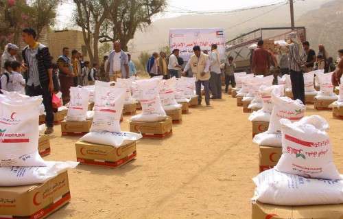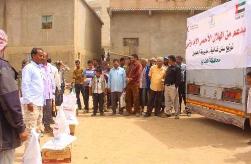 وزعت هيئة الهلال الاحمر الإماراتي صباح أمس 1000 سلة غذائية للأسر الفقيرة والمتعففه في مديرية الحصين بمحافظة الضالع.
