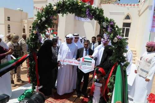 محافظ حضرموت وأمين عام الهلال الأحمر والسفير الإماراتي يدشنون تسليم مدينة خليفة السكنية لمتضرري إعصار 2008