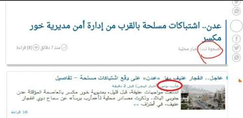 وروجت تلك المواقع اخبارا كاذبة لا اساس لها من الصحة عن وجود اشتباكات في بعض مناطق عدن.