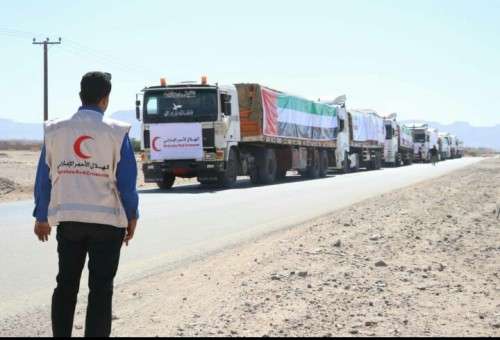سيرت هيئة الهلال الأحمر الإماراتي صباح اليوم قوافل مساعدات إنسانية تحمل على متنها اكثر من ٣٠٠ طن الى مديرية نصاب ومنطقة خورة بمحافظة شبوة وذلك عقب تأمينها وطرد عناصر الإرهاب منها .
