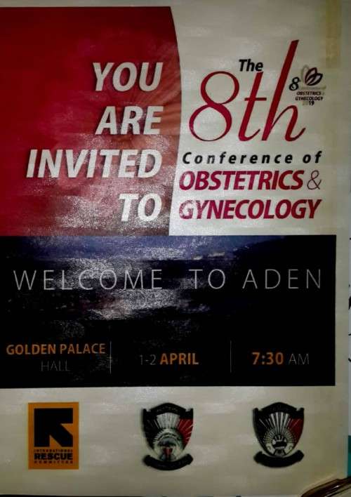 برعاية رئيس الوزراء الدكتور معين عبدالملك ، وإشراف رئاسة جامعة عدن ، اكمل قسم النساء والولادة بكلية الطب والعلوم الصحية جامعة عدن تحضيراته لتنظيم المؤتمر العلمي الثامن لأمراض النساء والتوليد بموعده في 1 - 2 أبريل 2019م بمديرية المنصورة قاعة القصر الذهبي الكبرى بالعاصمة عدن .