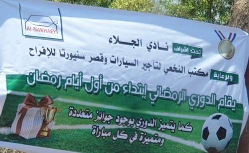 بإشراف نادي الجلاء الرياضي وبرعاية كريمه من الشيخ "ناصر النخعي" عبر مكتب النخعي لتاجير السيارات وقصر سنيورتا للافراح يقام الدوري الرمضاني لمديرية خورمكسر في عدن .