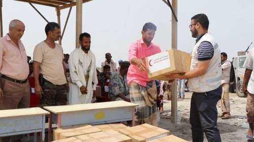 بدعم من دولة الإمارات العربية المتحدة، وزع الهلال الأحمر الإماراتي، اليوم دفعة جديدة من أدوات ومستلزمات الصيد لـ 100 صياداً في مدينة المخا بالساحل الغربي لليمن.