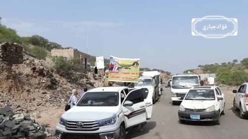 وكان على رأس هده القافلة -التي تحتوي على مواد غذائية وكمية من الأدوية، ودعم مالي ومواد أخرى- وفد رفيع المستوى من أبناء أبين يتقدمهم الشيخ العميد عبدالله الحوثري رئيس القيادة المحلية لإنتقالي محافظة أبين وعدد كبير من القيادات المحلية لانتقالي أبين والقيادات السياسية والعسكرية والشخصيات الإجتماعية وشخصيات ثقافية وغيرها.