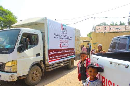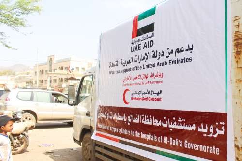 تواصل دولة الإمارات تسيير قوافل الإغاثة والإيواء وشحنات الأدوية والمستلزمات الطبية لمحافظة الضالع اليمنية عبر هيئة الهلال الأحمر الاماراتي.