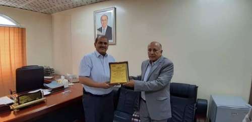 وقام صباح اليوم الأحد وكيل وزارة الثروة السمكية الاستاذ حميد عبدالله الكربي بزيارة معالي وزير النفط في مكتبه بديوان الوزارة بعدن وتكريمه بالنيابة عن السلطة المحلية بمديرية رضوم محافظة شبوة بشهادة تقديرية.