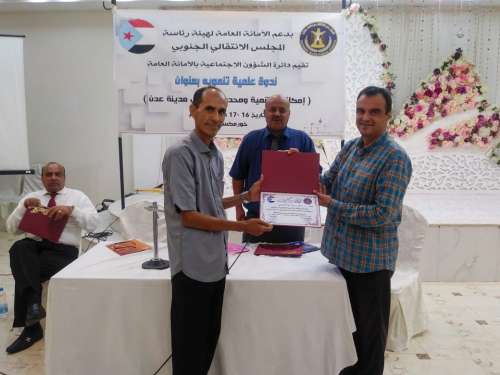 اختتمت دائرة الشؤون الاجتماعية في الأمانة العامة لهيئة رئاسة المجلس الانتقالي الجنوبي، اليوم الأربعاء، الندوة العلمية التي دشنتها يوم أمس حول "إمكانية التنمية و محدداتها في مدينة عدن".