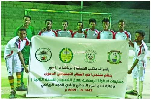 الجدير بالذكر ان البطولات الرمضانية المسائية(كرة القدم الخماسية ــ التنس ــ الشطرنج ــ الطائرة) تُقام برعاية نادي أحور الرياضي ونادي المجد الرياضي وأشراف مكتب الشباب والرياضة بالمديرية وتنظيم منتدى أحور الدعوي الاجتماعي الثقافي.