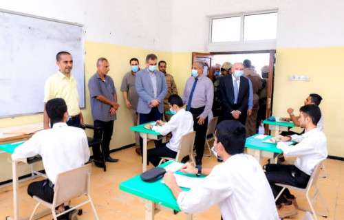 دشن محافظ العاصمة عدن الأستاذ أحمد حامد لملس اليوم الأحد بثانويتي البيحاني للبنين وباكثير للبنات النموذجيتين بمديرية صيرة بعدن امتحانات الثانوية العامة للعام الدراسي 2020-2021.