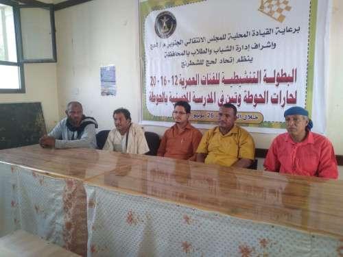 وعلى صعيد متصل وفي إطار جهودها لتنشيط الحركة الرياضية، أقر اجتماع عقد صباح اليوم بمقر القيادة المحلية لانتقالي بلحج، إنطلاق بطولة كرة الطائرة يوم الجمعة الـ 25 من يونيو من العام الجاري .