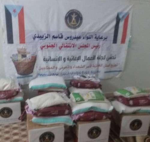 وأضاف :" أن توزيع السلال يأتي في إطار اهتمام قيادة المجلس الانتقالي بأسر الشهداء ورعايتهم كواجب وطني وإنساني تقديرا لما قدمه الشهداء الوطن".