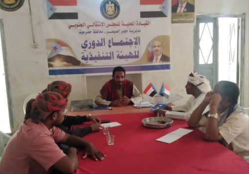 عقدت الهيئة التنفيذية للمجلس الانتقالي الجنوبي بمديرية حجر الصيعر يوم الثلاثاء اجتماعها الدوري الأول لشهر يوليو وذلك برئاسة الاخ/عمر صالح بن حبيش رئيس الهيئة التنفيذية بالمديرية، وقد افتتح الاجتماع بكلمة ترحيبيه بالحاضرين وحاثهم على ضرورة التحشيد والتجهيز للمشاركة في فعالية يوم الارض الخميس القادم بسيؤن.