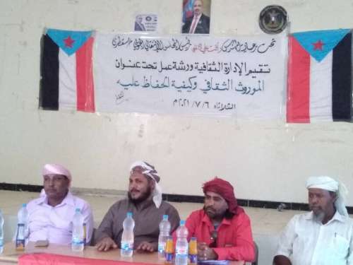 أقامت الإدارة الثقافية في الهيئة التنفيذية للقيادة المحلية للمجلس الانتقالي الجنوبي بمحافظة أرخبيل سقطرى، اليوم الثلاثاء، ورشة عمل بعنوان "الموروث الثقافي وكيفية الحفاظ عليه".