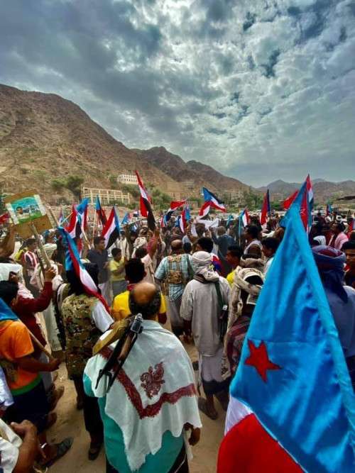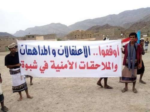 وتظاهر الآلاف من أبناء شبوة في مسيرات جماهيرية في مختلف مديريات المحافظة، جابت شوارع القرى والمدن، تلبية لدعوة المجلس الانتفالي الجنوبي.