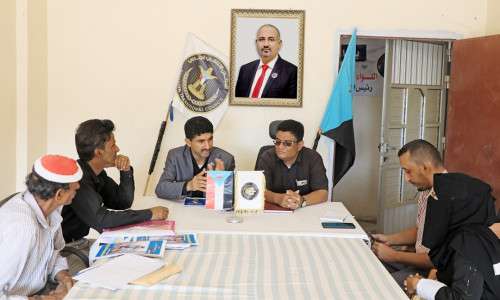 والتقى الدكتور باسم منصور في أول أيام برنامج الزيارة، بمنتسبي الإدارة الإعلامية في الهيئة التنفيذية للمجلس في مديرية البريقة بحضور جمال موسى رئيس تنفيذية انتقالي المديرية.