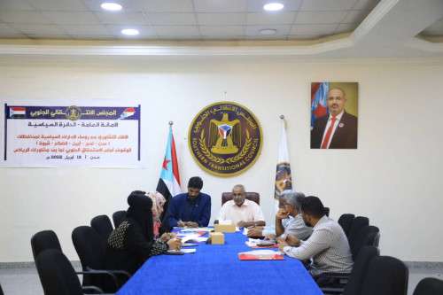 عقدت الدائرة السياسية في الأمانة العامة لهيئة رئاسة المجلس الانتقالي الجنوبي، يوم الثلاثاء، لقاءً تشاورياً مع مديري الإدارات السياسية في الهيئات التنفيذية للقيادات المحلية للمجلس الانتقالي في العاصمة عدن ومحافظات لحج، وأبين، والضالع، وشبوة، للوقوف على الاستحقاق الجنوبي لما بعد مشاورات الرياض .