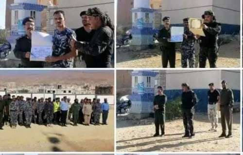 وكرم العقيد/حسن عيدروس اليهري مدير أمن المديرية والنقيب/علي المحمدي نائب مدير أمن المديرية الضباط وصف الضباط والجنود البارزين بشهادات تقديرية كجانب معنوي من قبل القيادة.