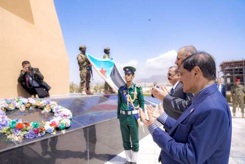 وقام الرئيس الزُبيدي بمعية نائبي رئيس المجلس الانتقالي اللواء فرج سالمين البحسني، نائب رئيس مجلس القيادة، واللواء أحمد سعيد بن بريك رئيس الجمعية الوطنية، بوضع إكليل من الورود على النصب التذكاري، وقراءة الفاتحة على أروح الشهداء الأبطال الذي قضوا نحبهم في عملية تحرير مدن ساحل حضرموت من سيطرة تنظيم القاعدة الإرهابي.