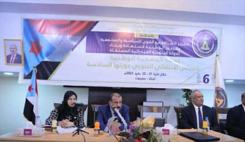 انعقاد الدورة السادسة جاء تحت شعار (لتعزيز الشراكة الوطنية بين القوى السياسية والمجتمعية والرموز الوطنية لاستعادة وبناء الدولة الجنوبية الفيدرالية المستقلة).