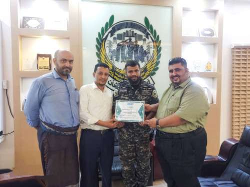 كرمت إدارة صحيفة 14 اكتوبر قائد قوات حرس المنشآت الحكومية العميد أحمد مهدي بن عفيف بدرع خاص.
