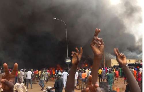 وخلال الاحتجاجات المؤيدة للانقلاب التي جرت يوم الخميس هاجم مؤيدو الانقلاب مقر الحزب الرئاسي في نيامي ونهبوه.