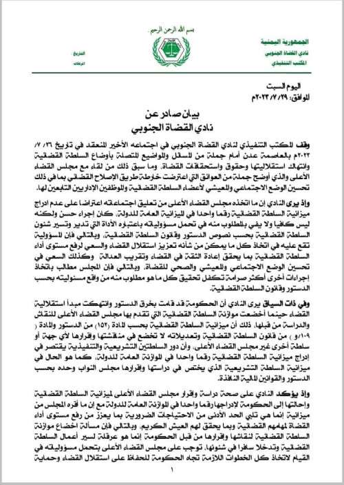 # بيان هام صادر عن نادي القضاة الجنوبي :